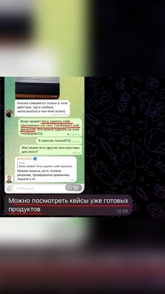 Разработка мобильных приложений для бизнеса. От идеи до MVP меньше месяца. Когда Googe таблиц уже мало или с ними слишком сложно. Подходит больше для внутренних процессов, но можно и для клиентов в т.ч.