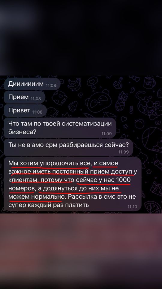 Однако, “под водой” творится настоящая магия. 90% системы, которой вы не видите, помогает вам при тех же усилиях выжимать максимум из ваших действий, получить максимальную прибыль. Помогает удерживать и обрабатывать всех клиентов и закрывает вопрос упущенных, недополученных денег, недозаработанных доходов.